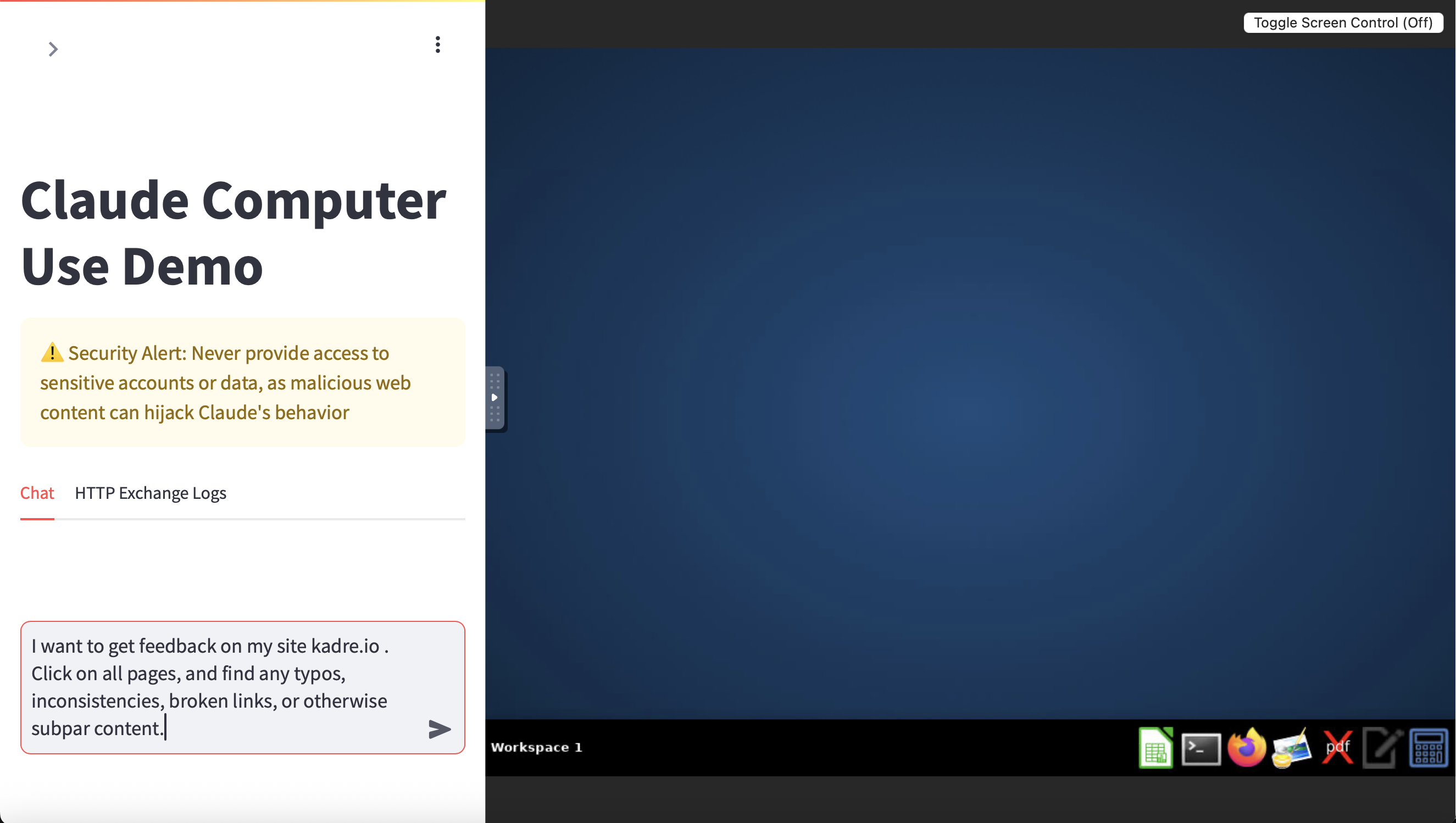 Anthropic has relatively easy tech demo to set up, with this one command I had a VM up and running with a sandboxed UI.